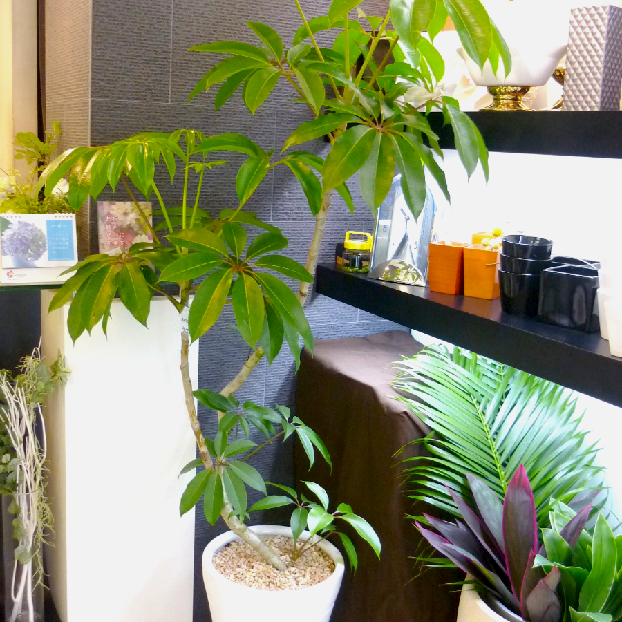 - 日陰や室内向きの観葉植物も多数ございます。設置場所の環境をお伺いしたうえで、適した植物をご案内いたします。