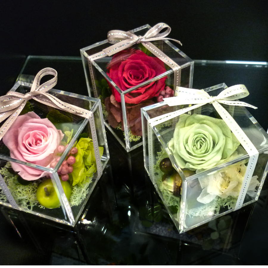 水やり不要で、数年単位で美しさを保つため、記念日・誕生日・結婚祝い・お供えなど、「想いを残したいギフト」に選ばれています。